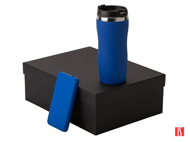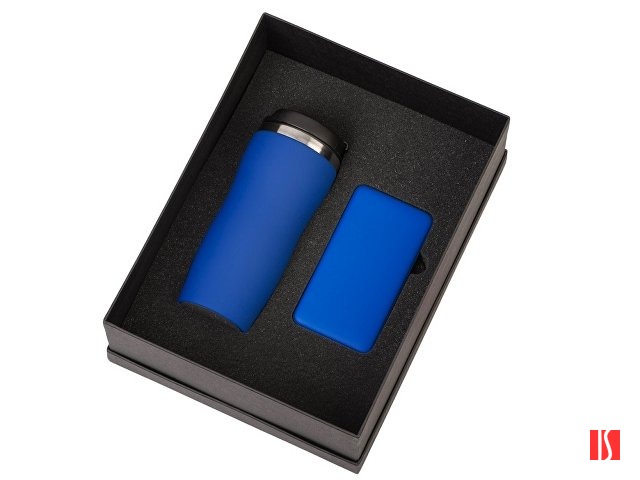 Подарочный набор c вакуумной термокружкой и повербанком С2, синий