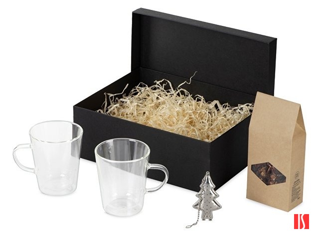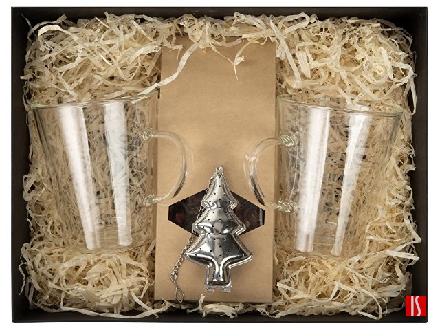 Набор для душевного чаепития на две персоны: пара кружек с двойными стенками из боросиликатного стекла, упаковка чая (100 гр) и оригинальное ситечко для заварки в форме ёлочки, которое создаст атмосферу праздника. Двойные стенки кружки Innsbruck создают интересный эффект «подвешенной» в воздухе внутренней колбы с напитком — на таком фоне лого будет выглядеть особенно выигрышно.
