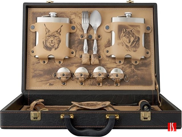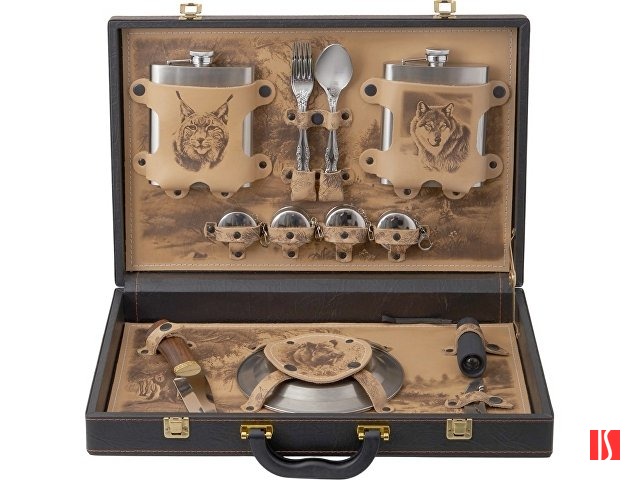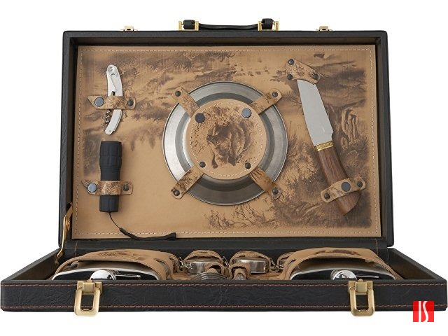 Все комплектующие упакованы в кейс из сплит-кожи с внутренней отделкой из натуральной кожи, украшенной художественным выжиганием. Обратите внимание, что художественное выжигание может отличаться от представленного на фото, так как это ручная работа, что делает каждый экземпляр по-настоящему уникальным.