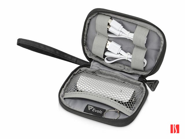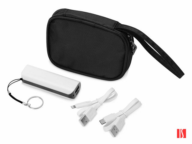 органайзер для проводов 13,5 х 9,5 х 3 см, внешний аккумулятор 2000 mAh 3 х 2,2 х 9 см, кабель USB 2.0 A - Lightning, кабель USB 2.0 A - USB Type-C