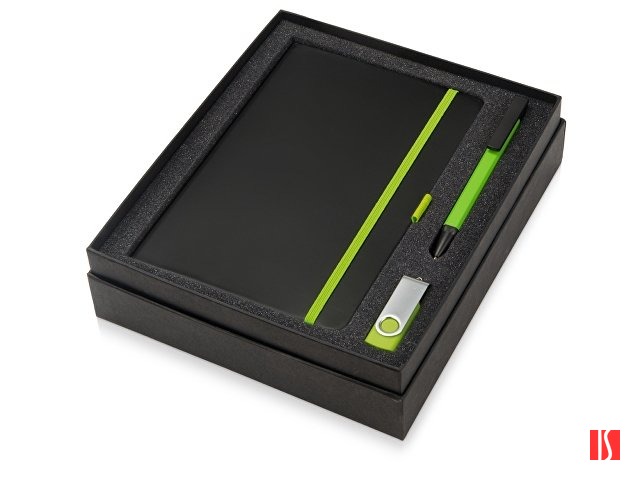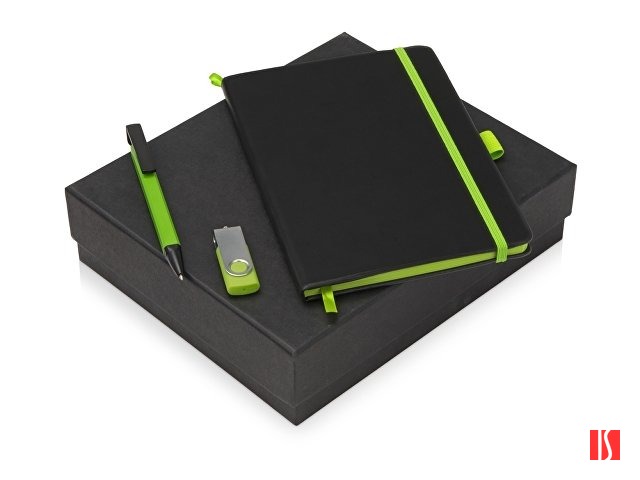 Подарочный набор Q-edge с флешкой, ручкой-подставкой и блокнотом А5, зеленый