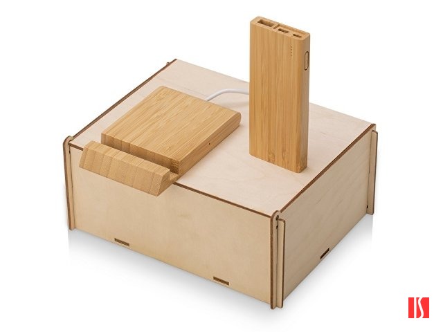 Подарочный набор с БЗУ и внешним аккумулятором «Bamboo Set», натуральный