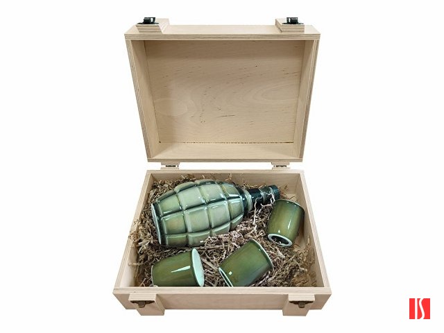 День Победы - один из самых важных и памятных государственных праздников в нашей стране. В этот знаковый для России день принято дарить памятные сувениры. Подарочный набор "День Победы" - это великолепный подарок на 9 мая, который запомнится надолго. В оригинальном деревянном “гранатном” ящике находятся керамические боеприпасы: штоф в виде гранаты и три стопки.