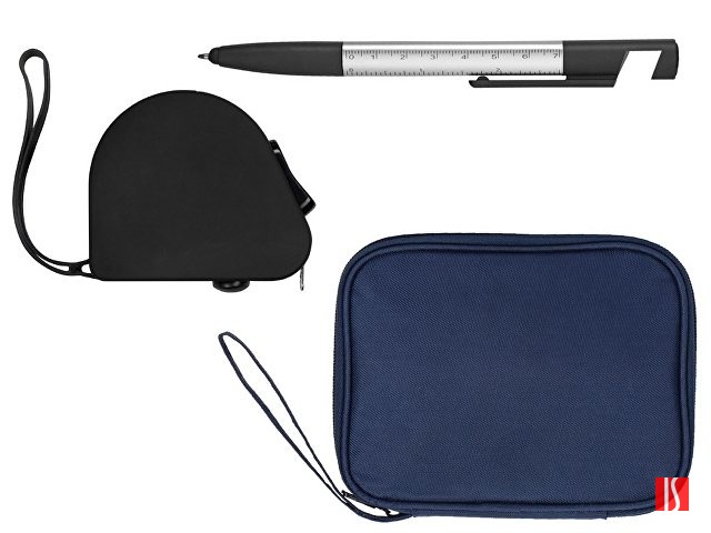 Подарочный набор с ручкой и рулеткой, черный/серебристый