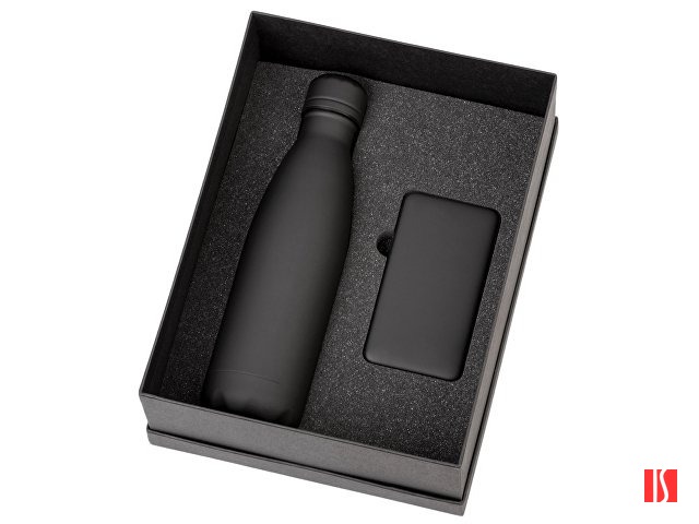 Подарочный набор с термобутылкой и повербанком С1, 5000 mAh, черный