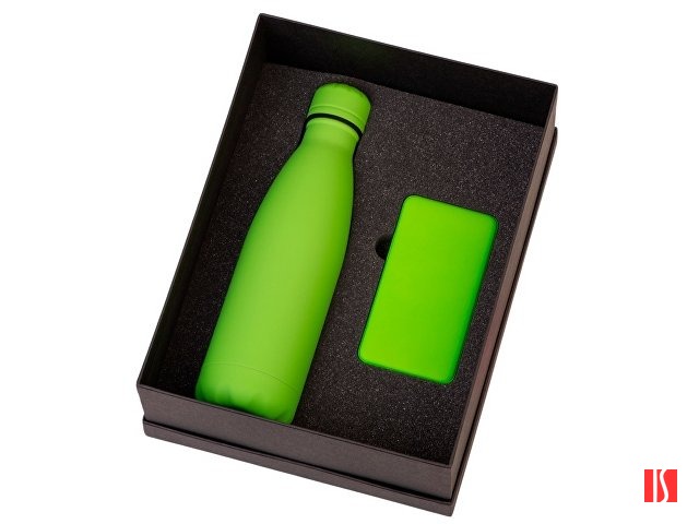 Подарочный набор с термобутылкой и повербанком С1, 5000 mAh, зеленое яблоко