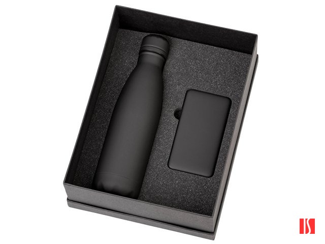 Подарочный набор с термобутылкой и повербанком С2, черный