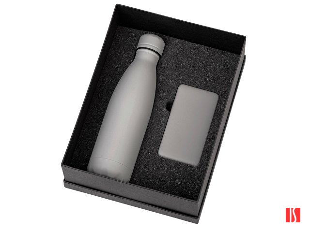Подарочный набор с термобутылкой и повербанком С2, серый
