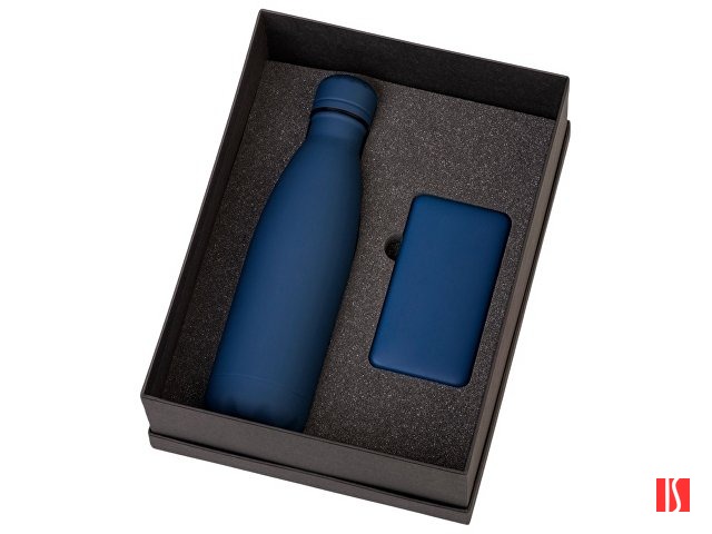 Подарочный набор с термобутылкой и повербанком С2, темно-синий