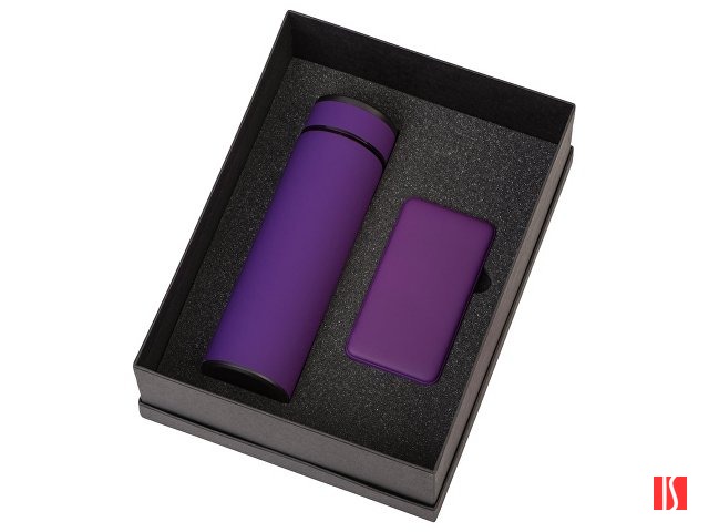 Подарочный набор с термосом и повербанком С2, фиолетовый