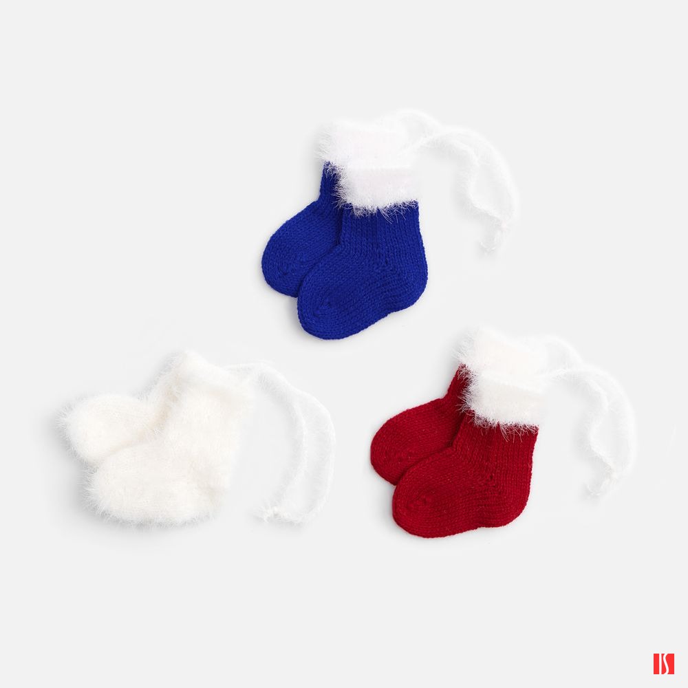 Миниатюрные вязаные подвески «Вьюжка» в виде носочков — это уютное и милое украшение для елки и новогоднего интерьера, отличное дополнение к основному подарку. Они добавят тепла и радости в пространство, создавая праздничное настроение.