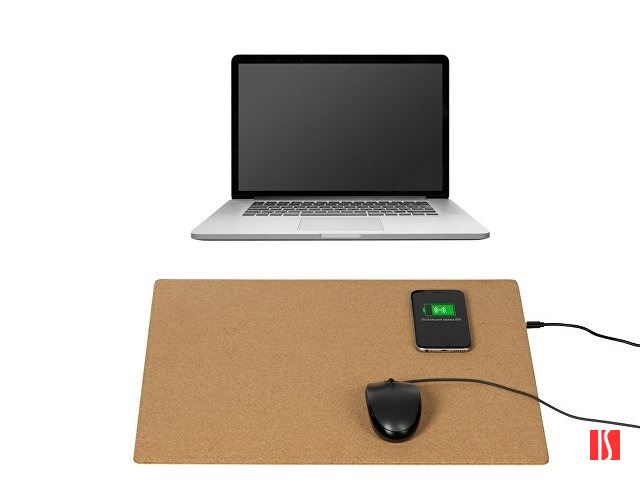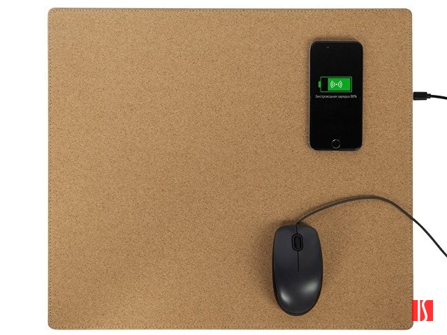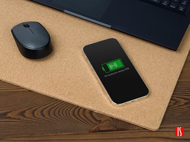 Заказать с нанесением логотипа от компании «Синтезис». Большой (45 х 40 см) коврик из пробки для мышки, который может заряжать Qi-совместимые устройства методом беспроводной зарядки. Коврик позволяет разместить не только мышку, но и небольшой ноутбук или планшет. Коврик решает проблему скольжения мышки, обеспечивает бесшумное перемещение мыши по поверхности, позволяет декорировать интересным способом рабочее место. В комплекте длинный зарядный кабель 100 см. Коврик не складывается.