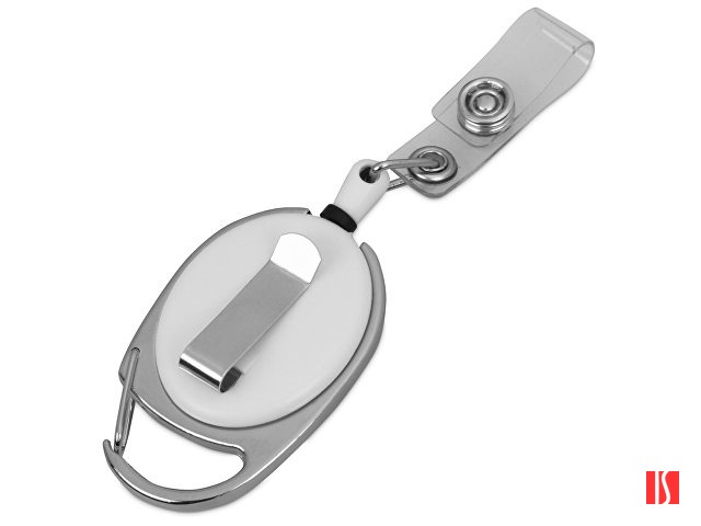 Ретрактор надежно крепится к поясу или другим вещам при помощи металлического карабина. Бейдж или пропуск удобно закрепляется кнопочным механизмом с петлей. Длина шнура - 90 см. Заказать с нанесением логотипа от компании «Синтезис».