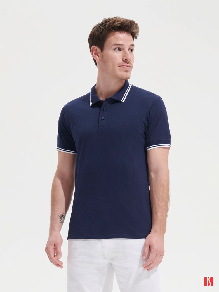 Рубашка поло мужская Pasadena Men 200 с контрастной отделкой, черная с зеленым