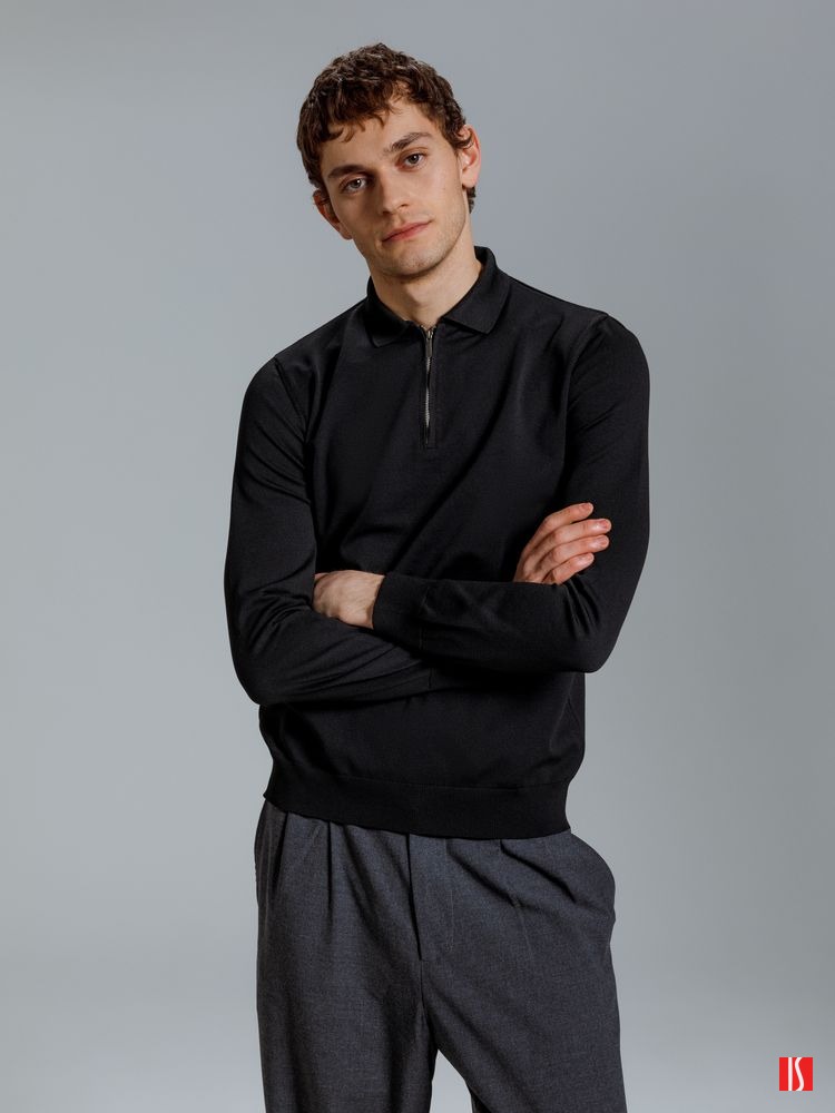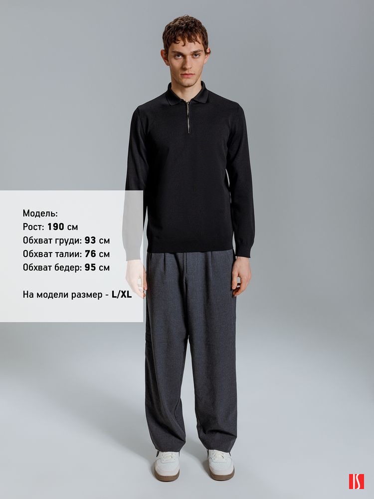 Мужская рубашка поло с длинным рукавом прямого силуэта.