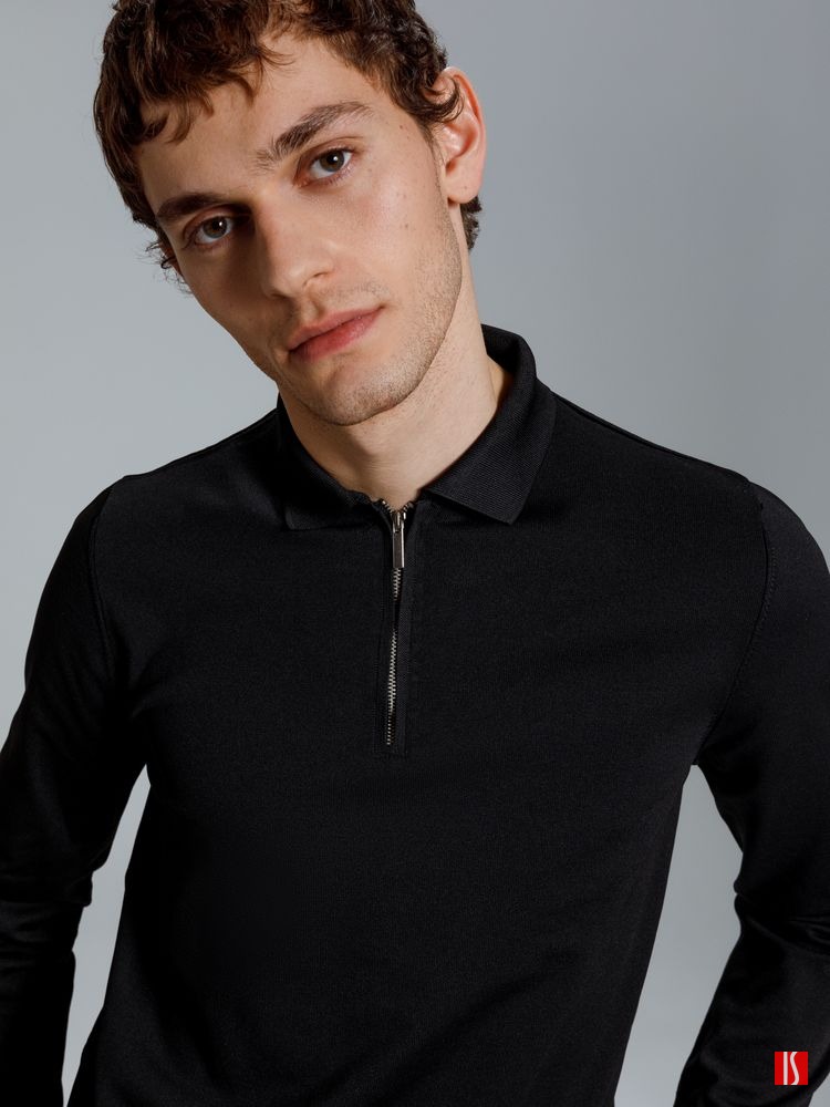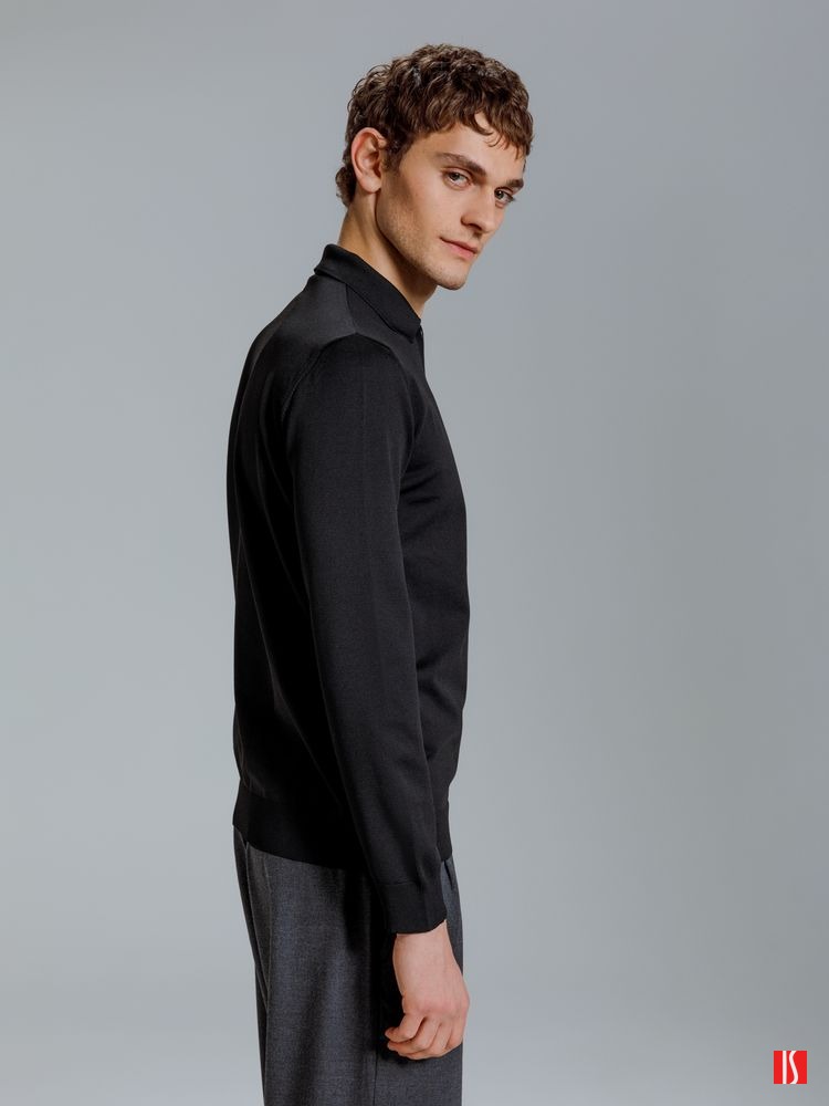 Рубашка поло мужская с длинным рукавом Terrazzo, черная