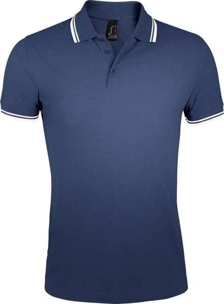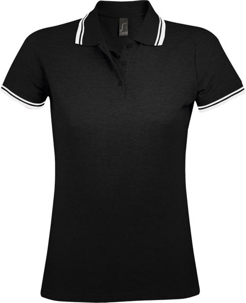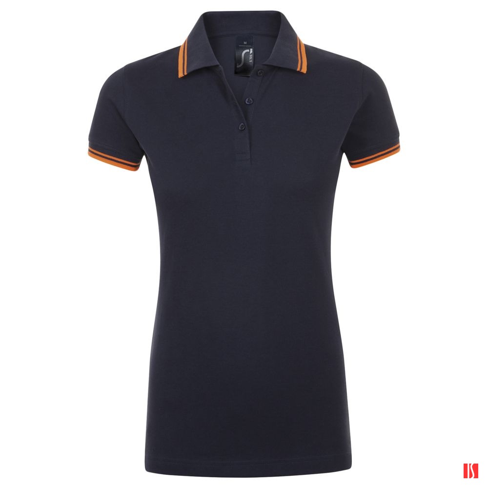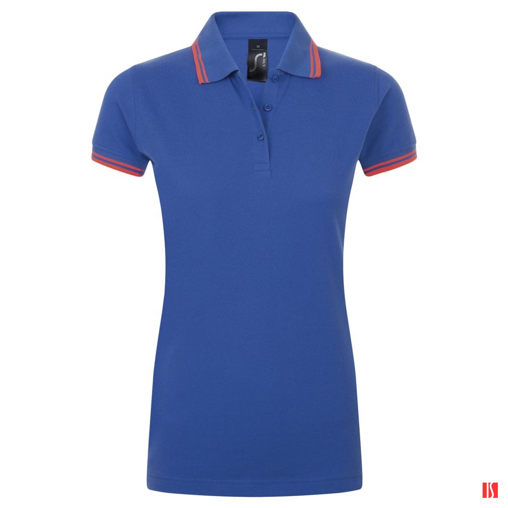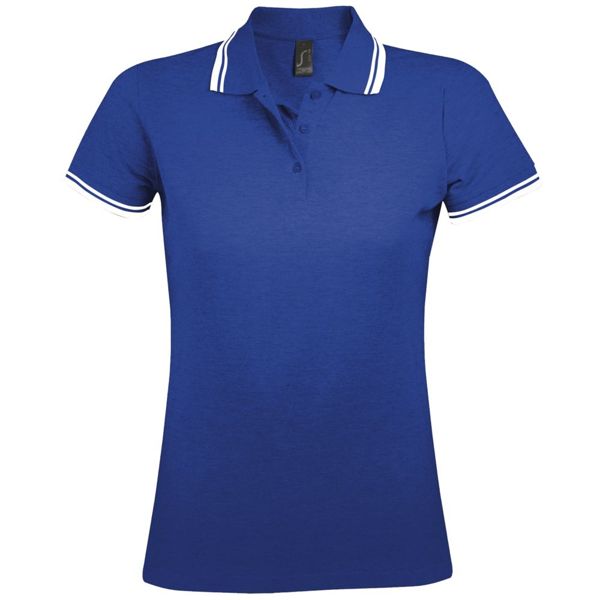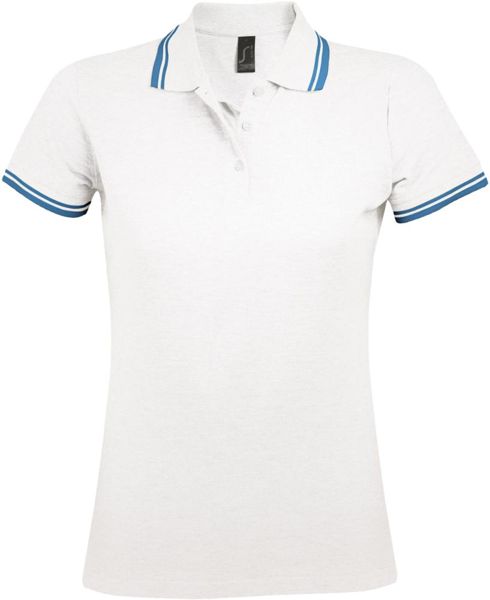Рубашка поло женская Pasadena Women 200 с контрастной отделкой, белая с синим