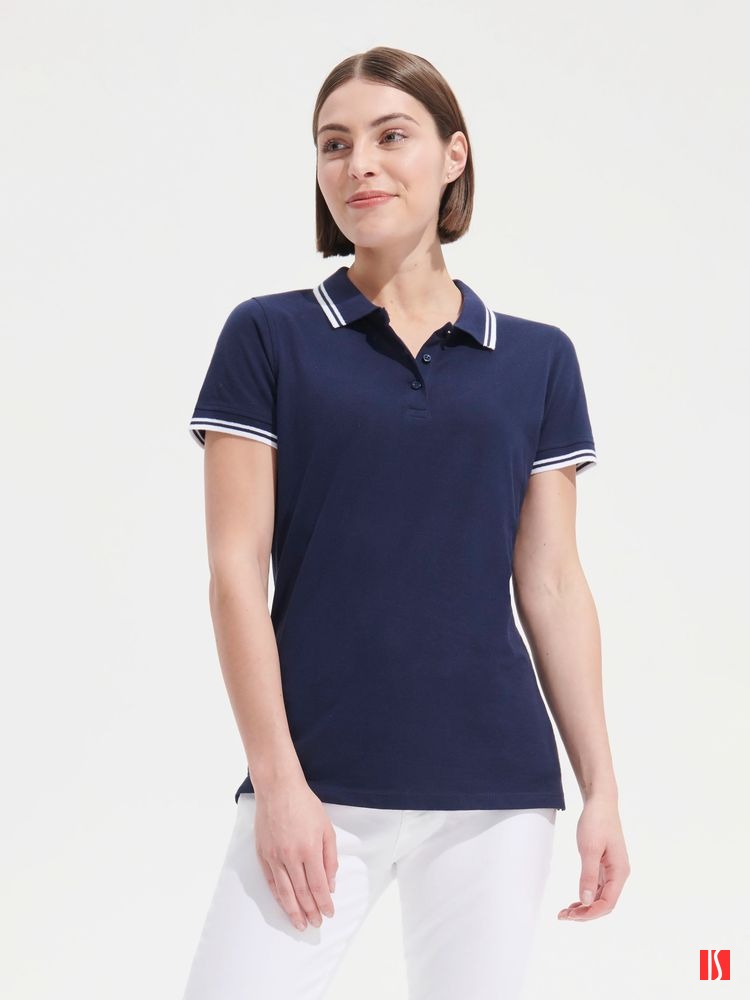 Рубашка поло женская Pasadena Women 200 с контрастной отделкой, черная с зеленым