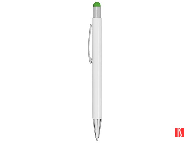 Ручка металлическая шариковая «Flowery» со стилусом и цветным зеркальным слоем, белый/зеленое яблоко