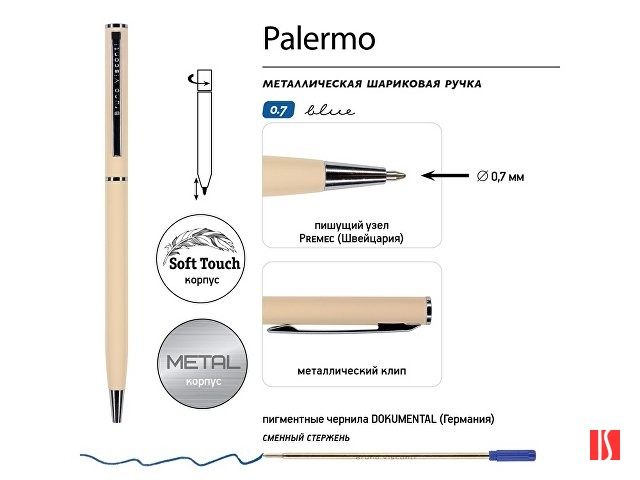 Ручка металлическая шариковая «Palermo», софт-тач, 0,7 мм, пудровый