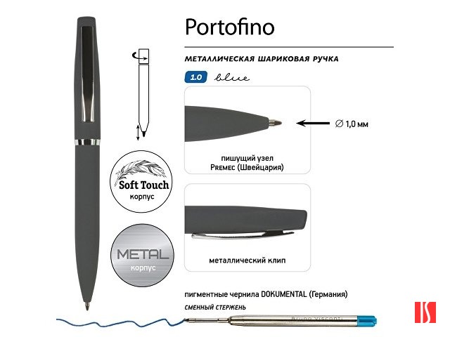 Ручка металлическая шариковая "Portofino", софт-тач, 1.0 мм, серый