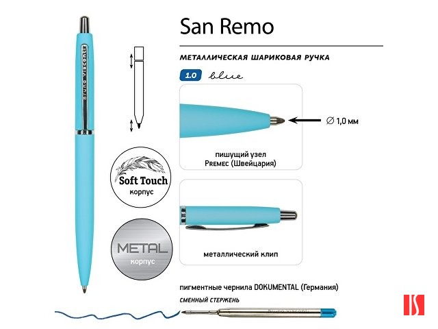 Ручка металлическая шариковая "San Remo", софт-тач, 1.0 мм, голубой