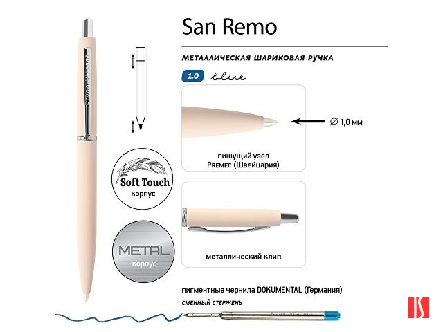 Ручка металлическая шариковая "San Remo", софт-тач, 1.0 мм, пудровый