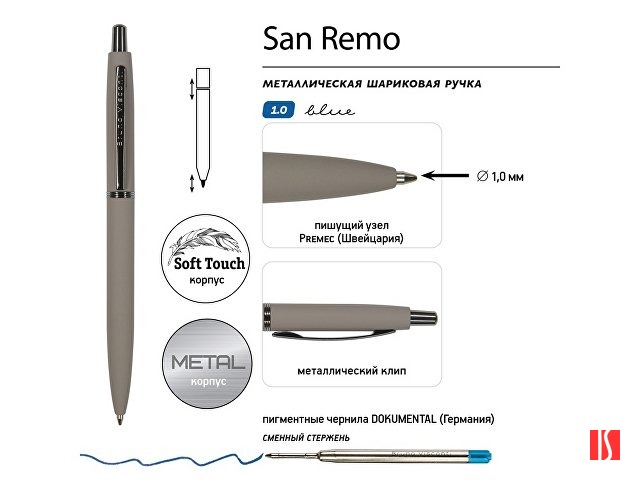 Ручка металлическая шариковая "San Remo", софт-тач, 1.0 мм, серый