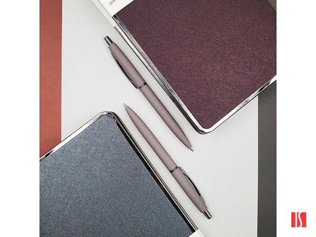 В ручке нет ничего лишнего, но она привлекает к себе внимание: изящна благодаря плавным линиям, эргономичному корпусу и приятна на ощупь, благодаря покрытию soft-touch. Контраст добавляют кольцо и клип из серебристого металла. Отличный бизнес-сувенир!