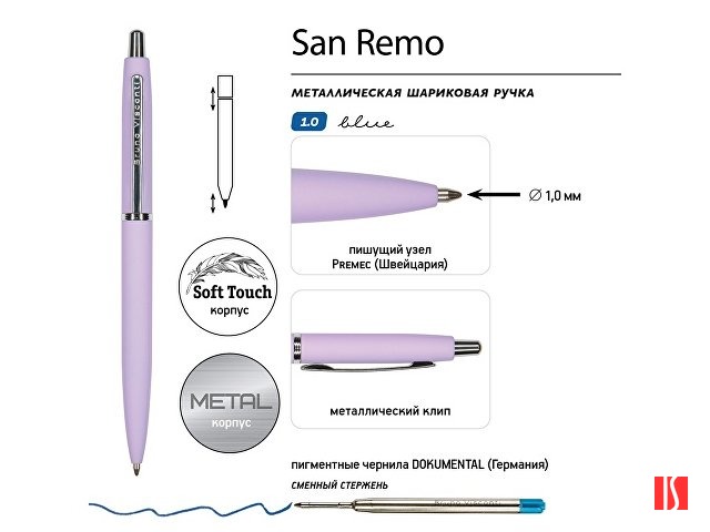 Ручка металлическая шариковая "San Remo", софт-тач, 1.0 мм, сиреневый