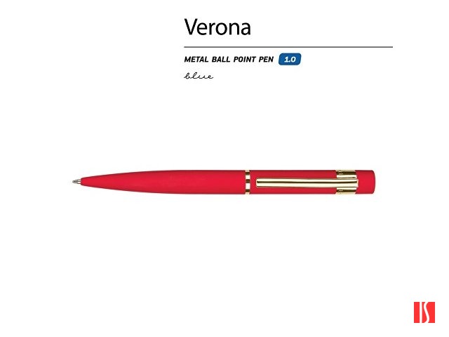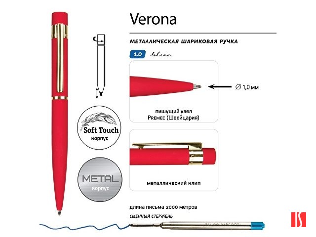 Ручка металлическая шариковая "Verona", софт-тач, 1.0 мм, красный