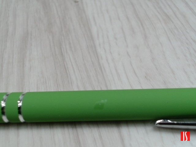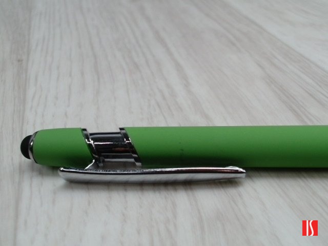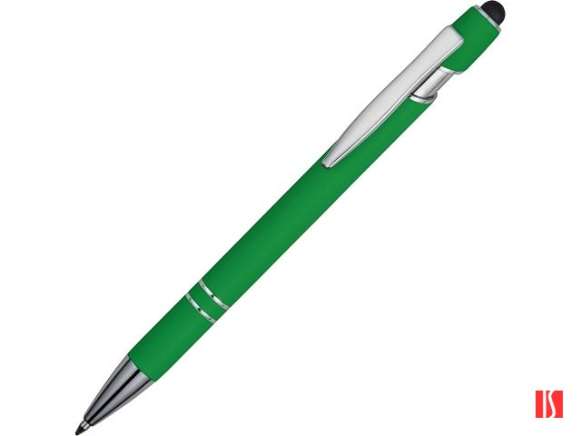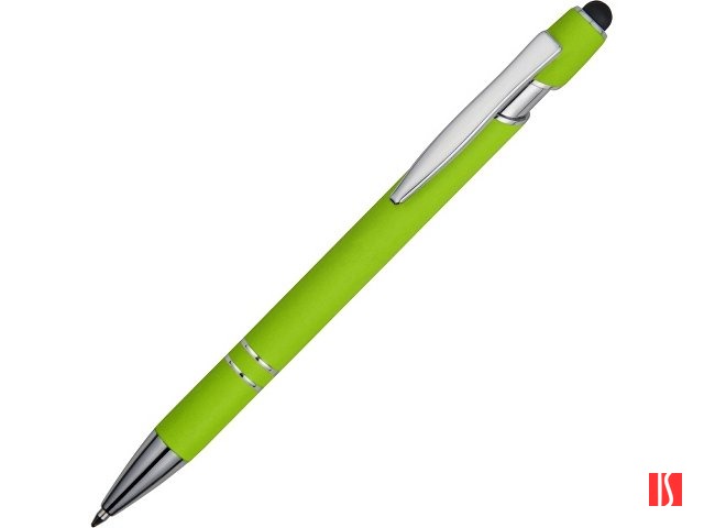 Ручка металлическая soft-touch шариковая со стилусом «Sway», зеленое яблоко/серебристый (P)