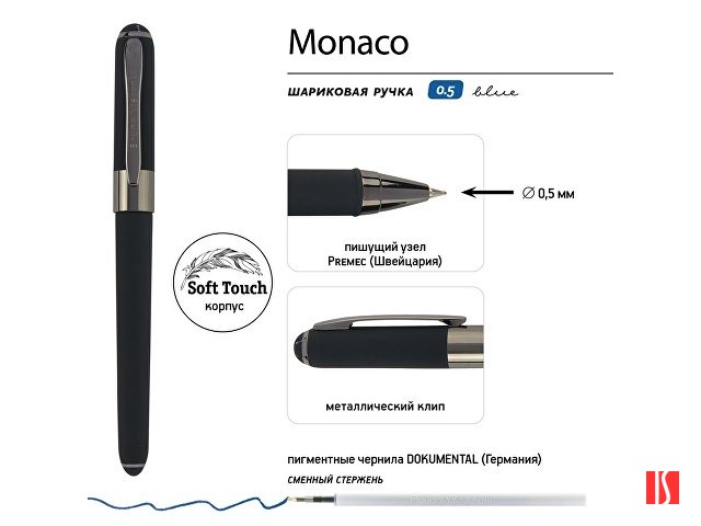 Ручка пластиковая шариковая «Monaco», 0,5мм, синие чернила, черный/вороненая сталь