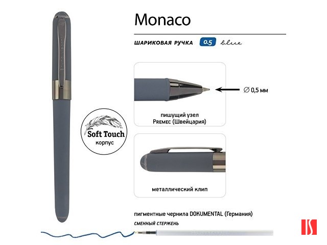 Ручка пластиковая шариковая «Monaco», 0,5мм, синие чернила, графит/вороненая сталь