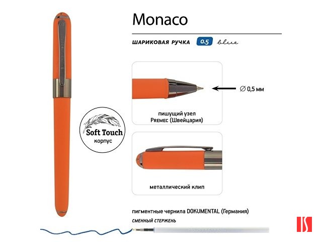 Ручка пластиковая шариковая «Monaco», 0,5мм, синие чернила, оранжевый/вороненая сталь
