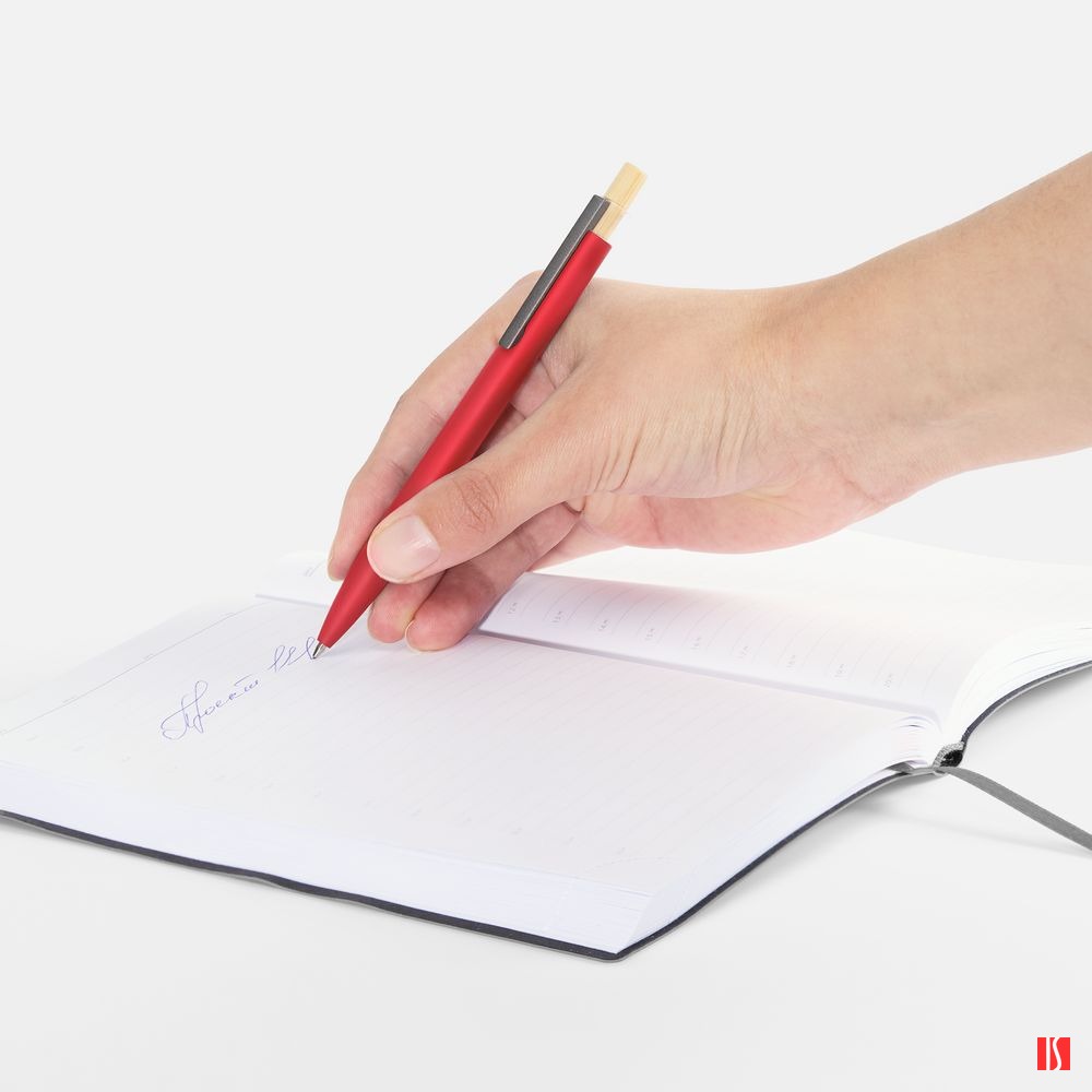 Заказать с нанесением логотипа от компании «Синтезис». Шариковая ручка Bambink в алюминиевом корпусе с матовым покрытием и бамбуковой кнопкой. Строгая форма корпуса и сочетание трех разных материалов делают ручку одновременно лаконичной и нескучной.