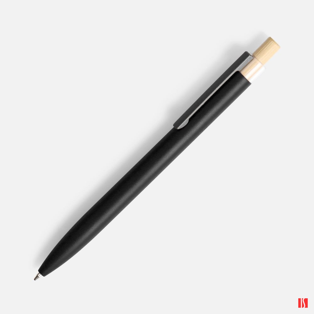 Заказать с нанесением логотипа от компании «Синтезис». Шариковая ручка Bambink в алюминиевом корпусе с матовым покрытием и бамбуковой кнопкой. Строгая форма корпуса и сочетание трех разных материалов делают ручку одновременно лаконичной и нескучной.