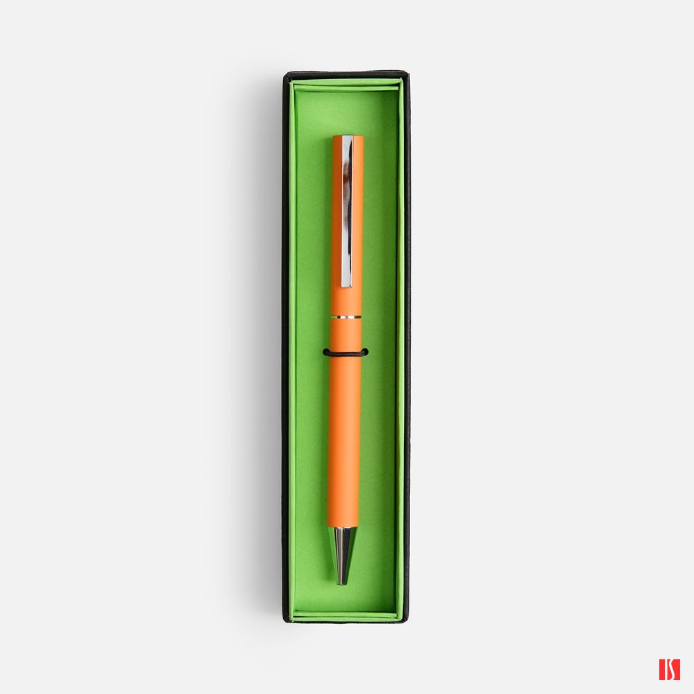 Элегантная ручка Blade в металлическом корпусе с покрытием софт-тач. Футляр из дизайнерской бумаги с контрастным коробом придает подарку законченный вид.
