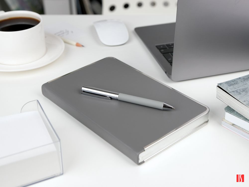 Заказать с нанесением логотипа от компании «Синтезис». Приятно тяжелая металлическая ручка с покрытием софт-тач.