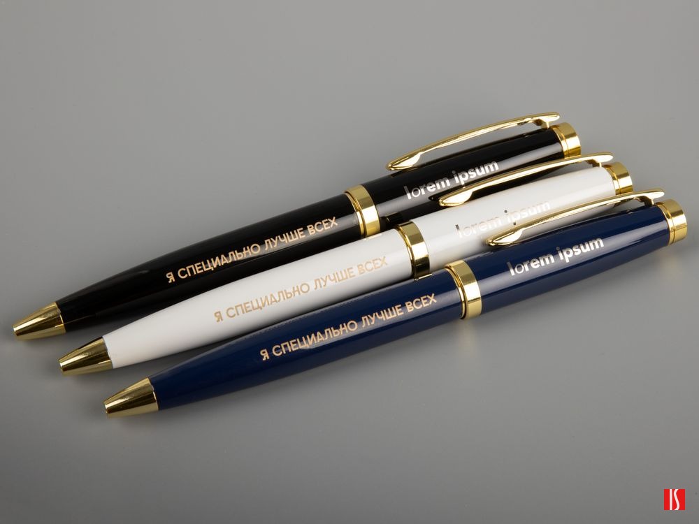 Классическая металлическая ручка с глянцевым корпусом и золотистыми деталями. Идеальный подарок для ценного сотрудника.
