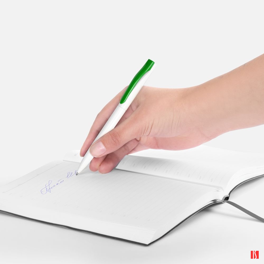 Ручка шариковая Pin, белая с зеленым