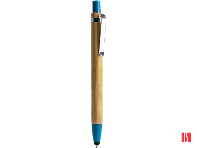 Ручка-стилус шариковая NAGOYA с бамбуковым корпусом, натуральный/голубой