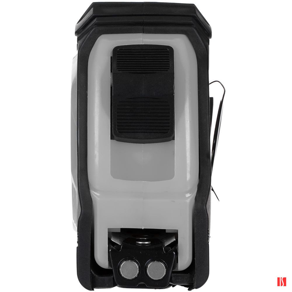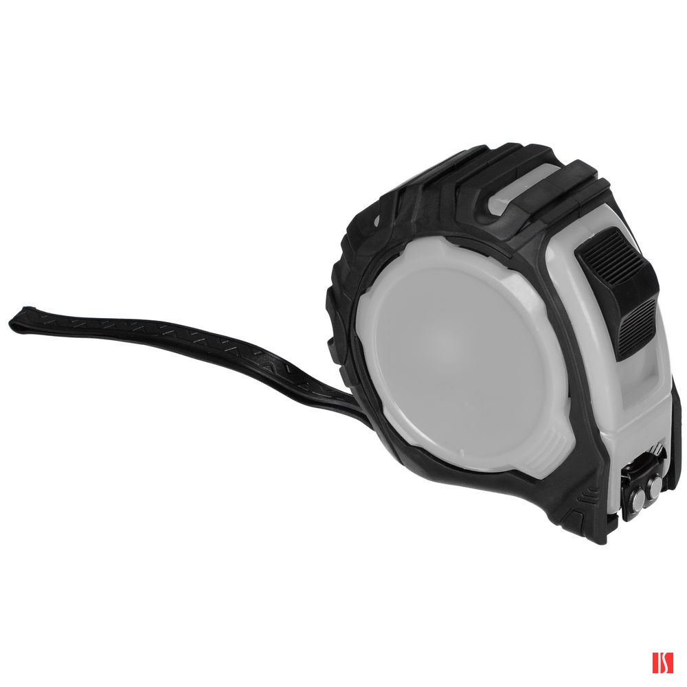 Длина измерительной ленты 5 метров позволяет работать на больших расстояниях. Лента оснащена магнитным наконечником для надежного сцепления с металлическими поверхностями. Корпус рулетки выполнен из прочного пластика с накладкой из ПВХ, которая предотвращает скольжение инструмента в руке.