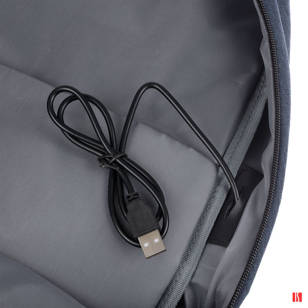 - Внешний USB-порт для зарядки гаджетов (внутри рюкзака — провод для подключения)