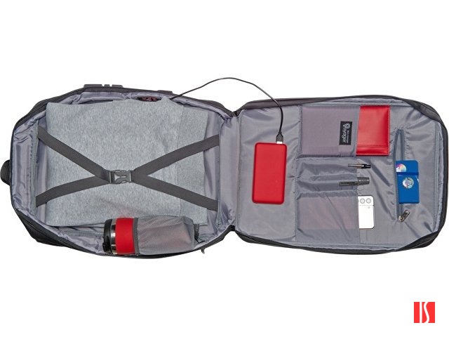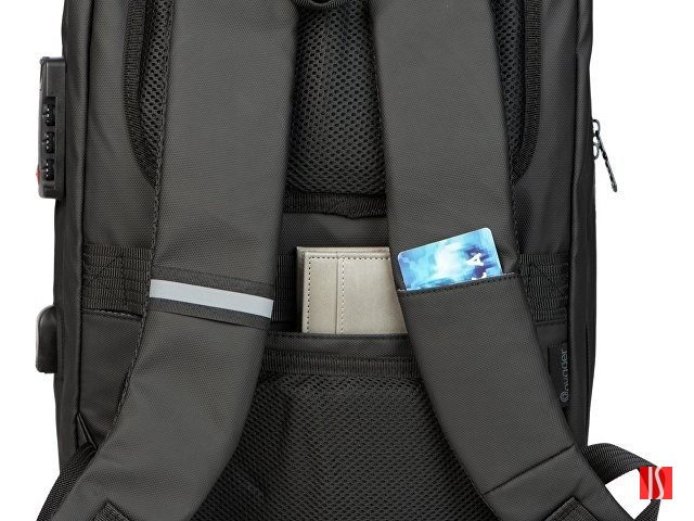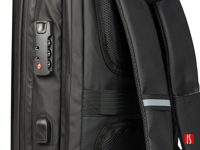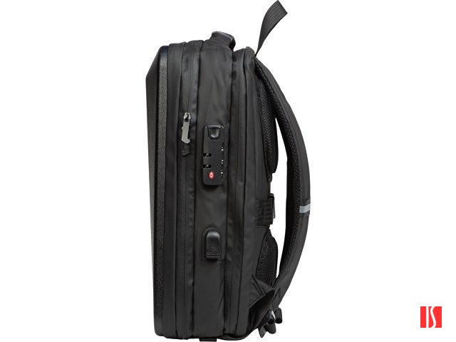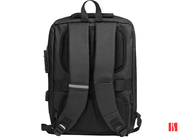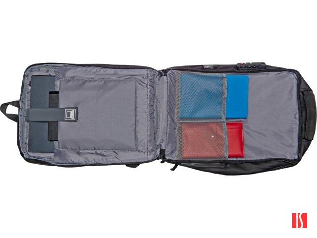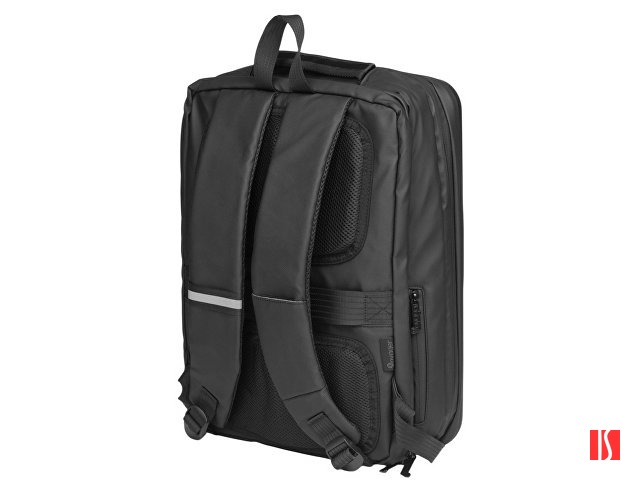 Заказать с нанесением логотипа от компании «Синтезис». Водостойкий бизнес-рюкзак с пластиковой панелью спереди выглядит стильно и обеспечивает бережное хранение ваших личных вещей. Подходит для передвижений по городу и деловых поездок. 2 вместительных отделения позволяют разместить все необходимое: большое отделение для одежды с фиксирующими ремнями и органайзером, меньшее отделение с карманами для ноутбука и планшета и сетчатым органайзером. Несанкционированный доступ к содержимому вашего рюкзака будет затруднён благодаря кодовому замку и прочной пластиковой панели спереди. В рюкзаке предусмотрено много дополнительных удобств для использования: