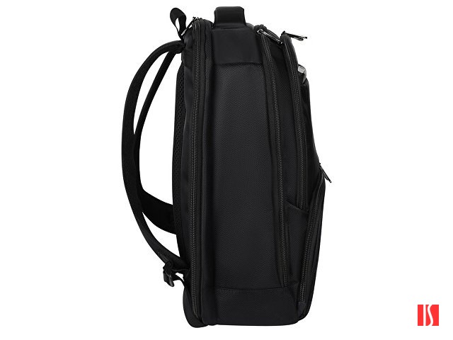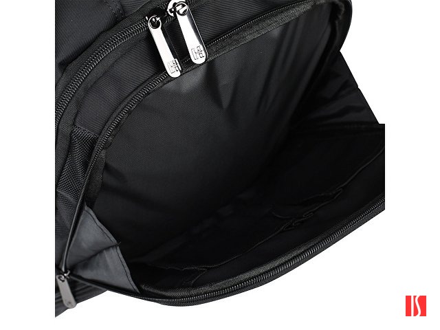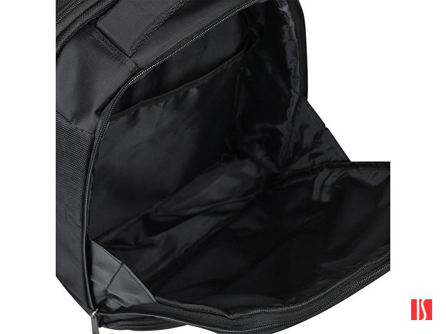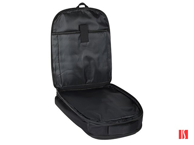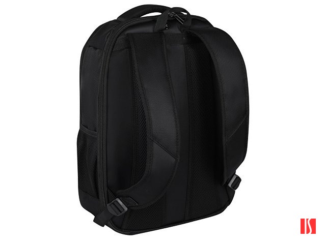 Рюкзак для ноутбука с двумя наружными фронтальными карманами на молнии. Одно отделение для ноутбука. Второе широкое отделение можно использовать для одежды при поездках в командировку. Сбоку сетчатый карман для зонта или бутылки. Сетчатая спинка. Лямки регулируются по длине. Заказать с нанесением логотипа от компании «Синтезис».