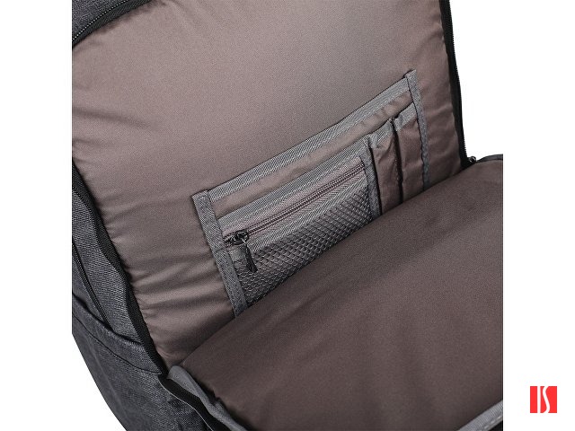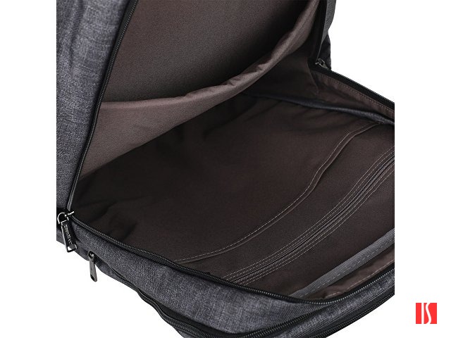 Большой вместительный рюкзак для ноутбука 17". 2 наружных фронтальных кармана на молнии. Расширяющиеся боковые карманы на эластичной ленте. Внутри 2 отделения с дополнительными карманами на молнии и органайзером. Сетчатая спинка. Лямки регулируются по длине. Заказать с нанесением логотипа от компании «Синтезис».