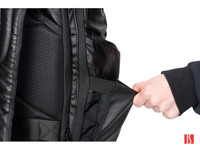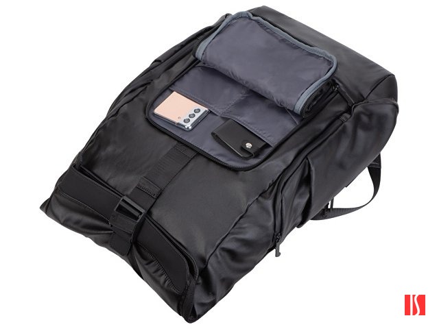 Состоит из 2х отделений - для ноутбука и планшета и основного большого отделения, которое закрывается на магнитный фиксатор вверху. Внутри каждого отделения есть сетчатый карман на молнии для удобства хранения личных вещей. Снаружи расположен передний карман на молнии. Боковой наружный карман с каждой стороны состоит из 2х отделений: большого на молнии и меньшего, расширяющегося с помощью эластичной вставки. Благодаря двойным бегункам молния основного отделения открывается сверху и сбоку. В рюкзаке предусмотрено много полезных мелочей для удобства использования: