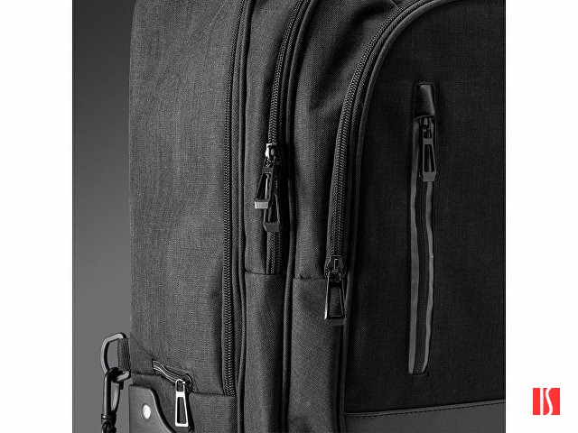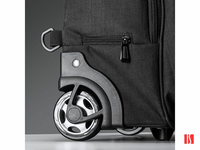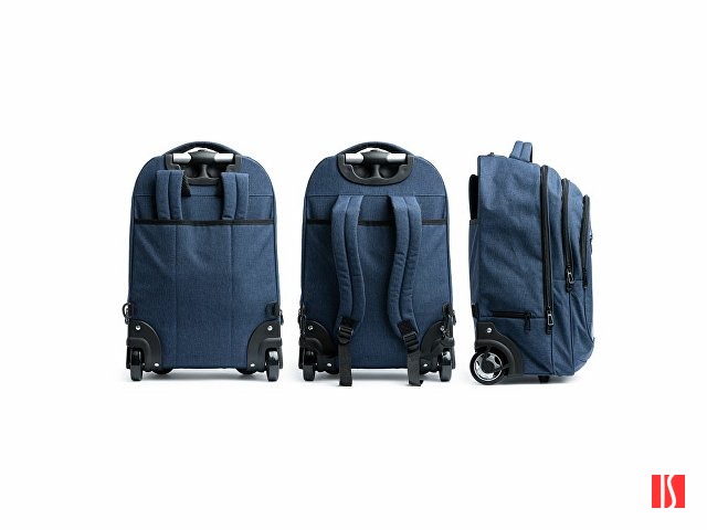 Рюкзак на колесиках. Изготовлен из полиэстера 300D. Большое основное отделение с мягким внутренним карманом идеально подходит для ноутбука с диагональю до 17 дюймов. Два кармана внутри и передний карман. Высококачественная прочная конструкция. Регулируемые мягкие ремни. Грязеотталкивающие чехлы на колеса. Заказать с нанесением логотипа от компании «Синтезис».
