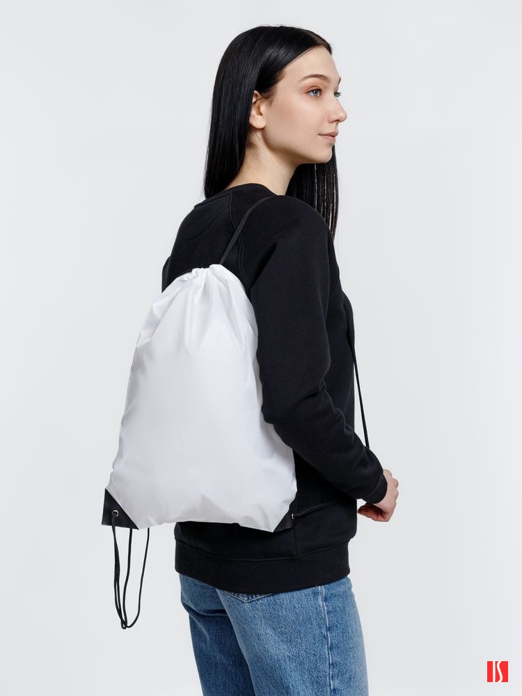 Заказать с нанесением логотипа от компании «Синтезис». Базовый рюкзак-мешок с укрепленными уголками.